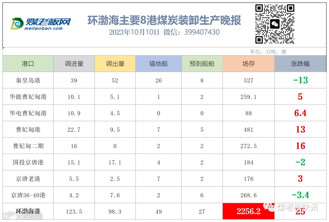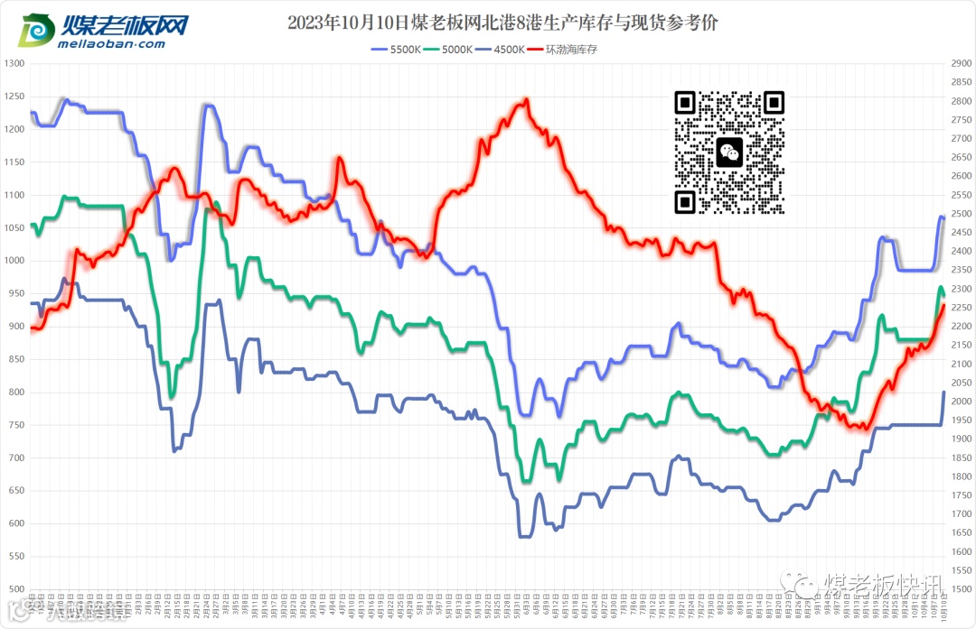 HB煤矿:2023年10月11日上午7点起现金售价:原煤↑10