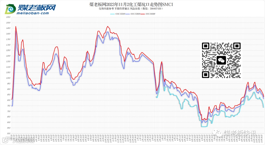 截止11月2日上午,据追踪的主流煤矿来看,价格变动煤矿近20家(含榆神、府谷、横山、内蒙),仅1家面、块(煤质恢复)上涨20元/吨,其余均下跌,面煤跌势偏大。榆阳部分大矿竞拍降幅40~50元/吨;横山区域价格持稳;府谷区域部分煤矿价格下跌20~25元/吨;内蒙区域延续跌多涨少,个别大矿沫煤下调10元/吨,混块上涨5元/吨。秋冬季属煤矿安全事故高发季,因重大安全隐患或突发事故的煤矿则会被立即责令停产,其中大矿亦不例外,阶段性煤源供给有略减预期。