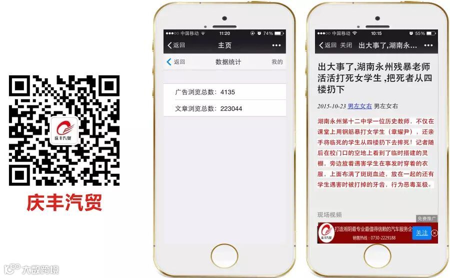 入围文章:《出大事了,湖南永州惨暴老师活活打死女学生,把死者从四楼扔下》,冠军诞生时间只有1个星期,21万次的曝光为您节约了16800元广告费