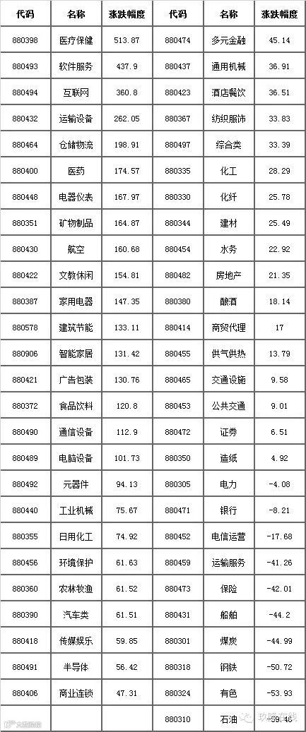 表1 各行业涨跌幅变化情况分析