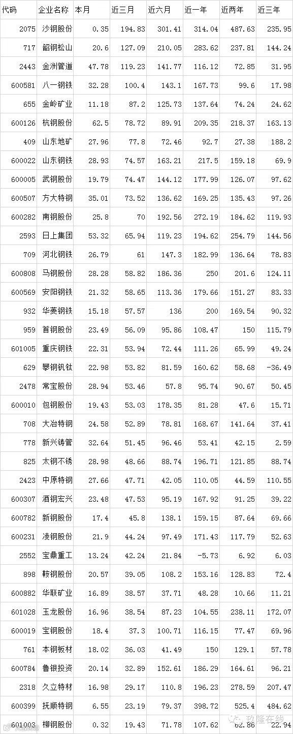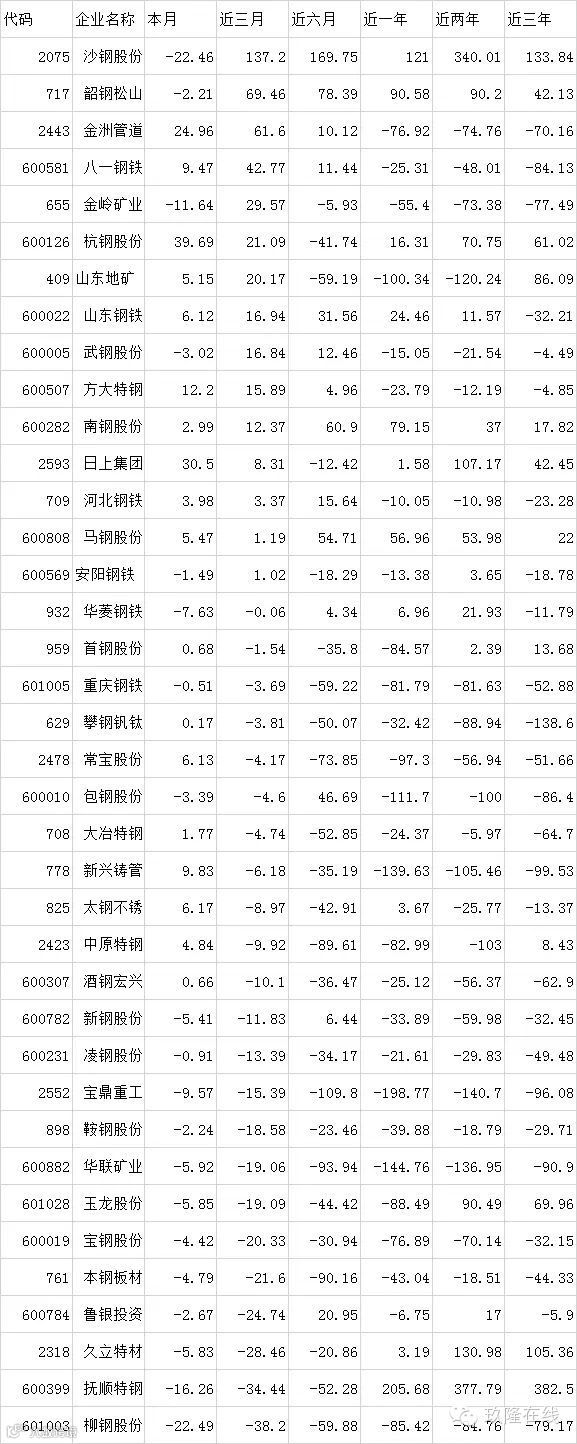 表3 近期钢铁行业相关股票涨跌幅情况(近三月排序)
