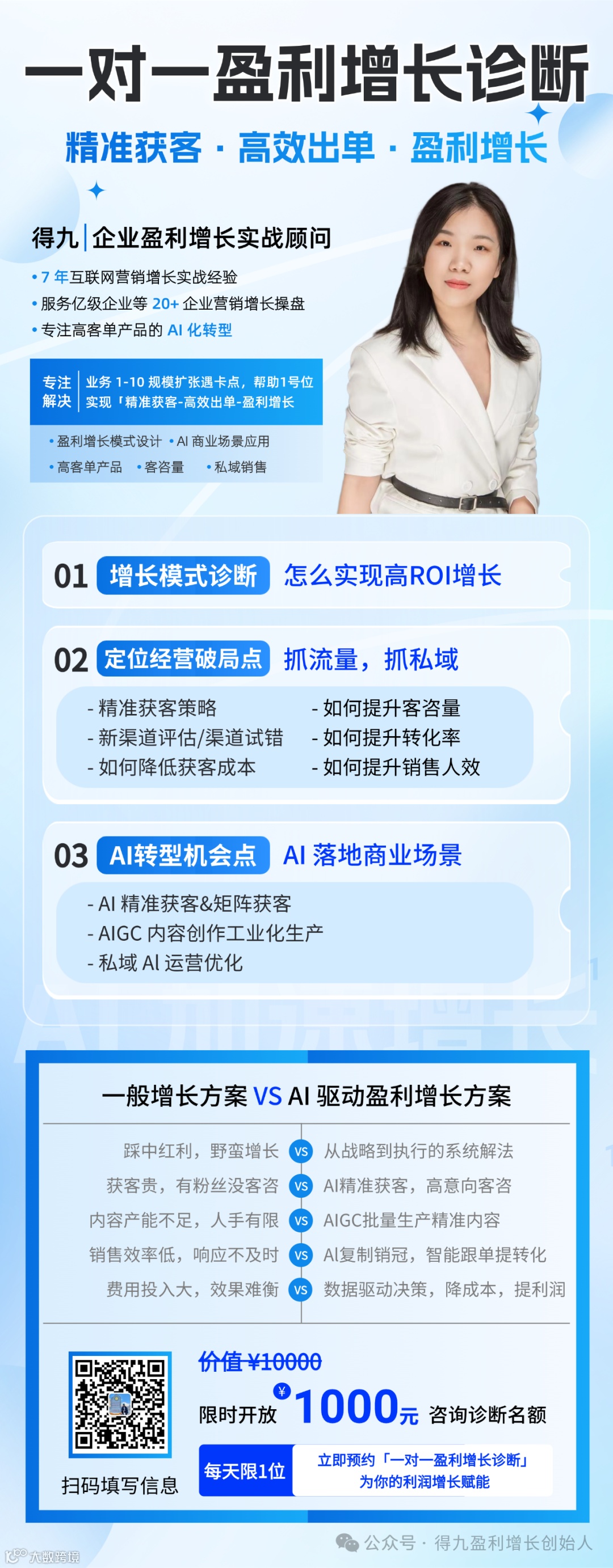 适合谁:中小企业1 号位/高客单产品/IP 创业者/想接触AI但无从下手/想链接的同频者