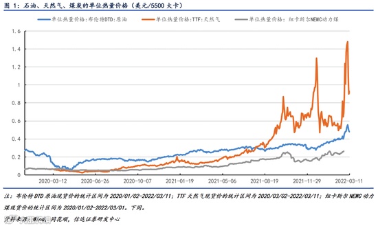 一、石油、天然气、煤炭单位热量价格分析