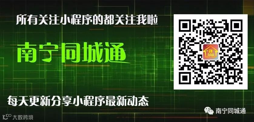 每天更新小程序最新动态,了解更多干货敬请关注公众号:南宁同城通