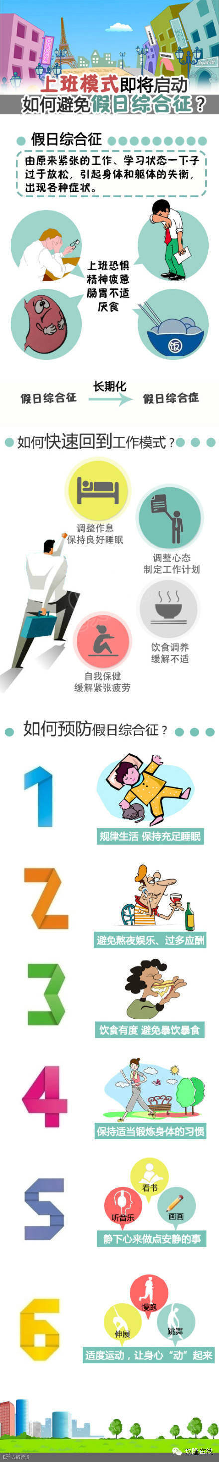 假期综合征除了生理,更多是心理上的问题。可以通过回忆以往工作中的快乐时光,例如办公室的趣事、某个企划的成功等,有助于上班族尽早进入工作状态。