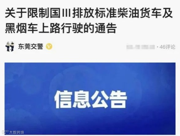 东莞:8月1日起国三车、黑烟车限行