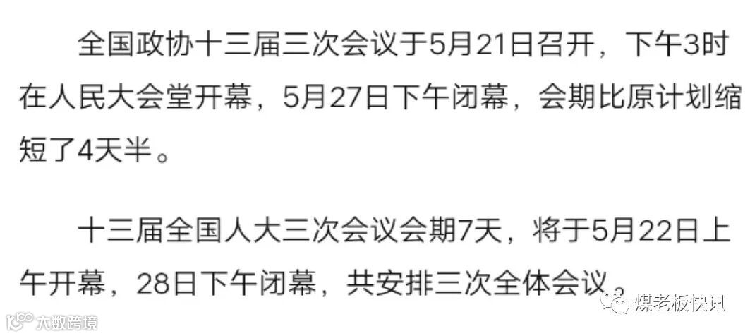 两会将提前5月28结束
