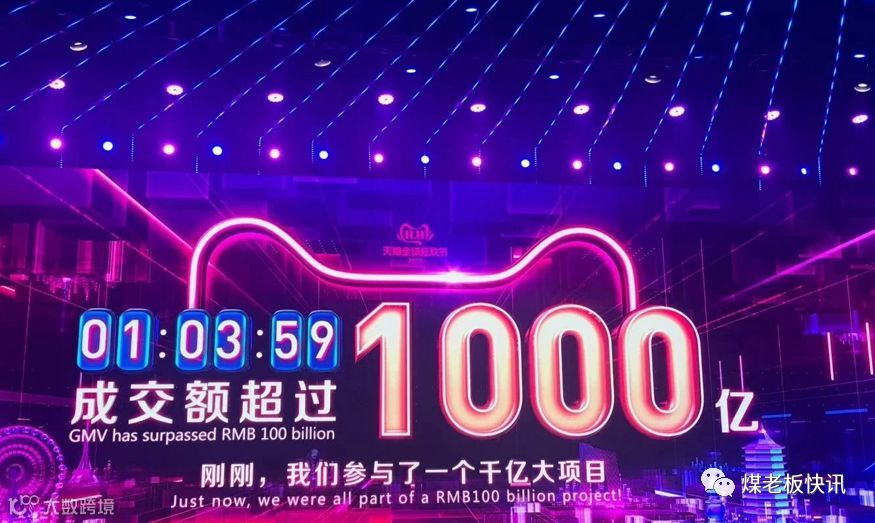 1时03分59秒,天猫双11成交总额冲破1000亿!而达到这个数字去年用了1小时47分,前年用了9小时!