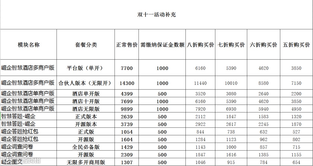 单个模块/插件/更新服务费打9折,2个以上给8折,3个或以上给7折(更新服务费也算一个产品,所以各位亲赶紧去看看有哪些我们的产品服务时间到了,赶紧参与活动)。