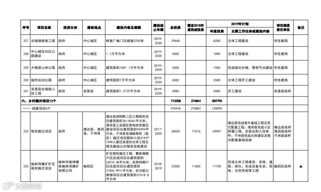 榆林市乡村振兴示范村建设工程 总投资:10亿元