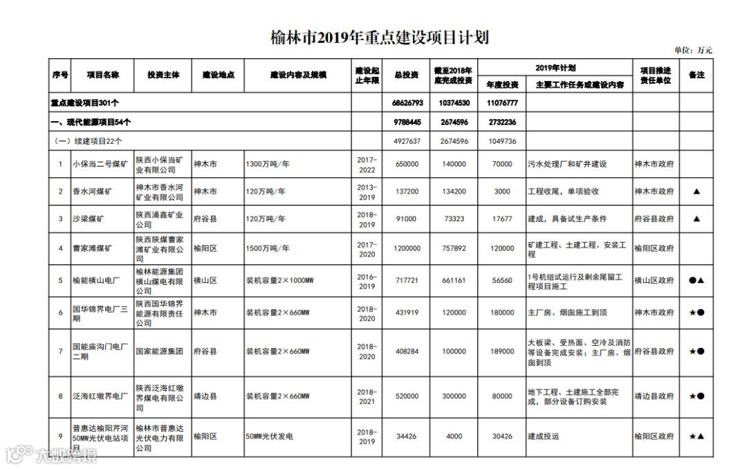附:榆林市2019年重点建设项目计划(点击图片可查看大图)