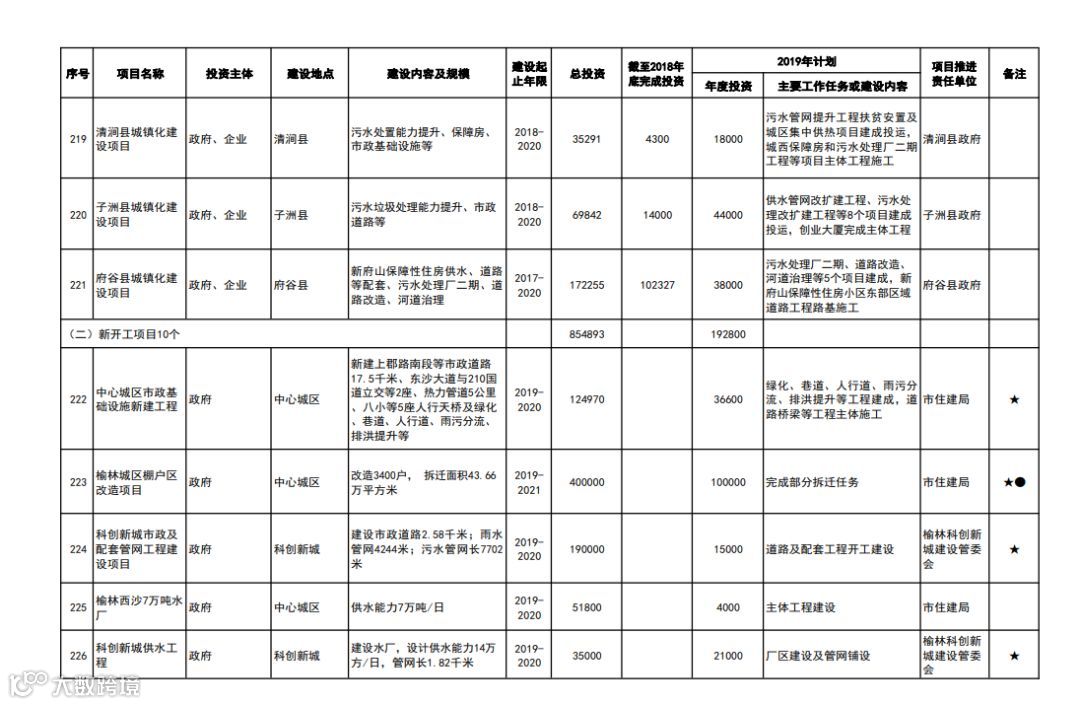 榆林科创新城市政及配套管网工程建设 总投资:19亿元