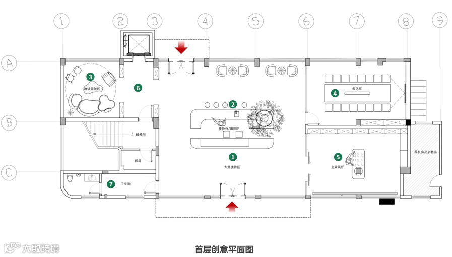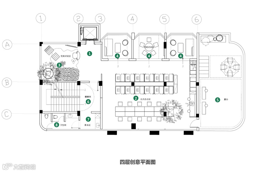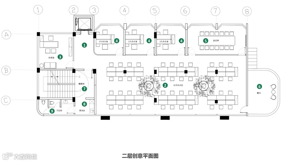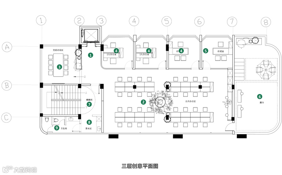本项目以毛坯形式交付,赋予租户充分的设计自由,可规划专属的个性化空间,以下提供创意空间布局。