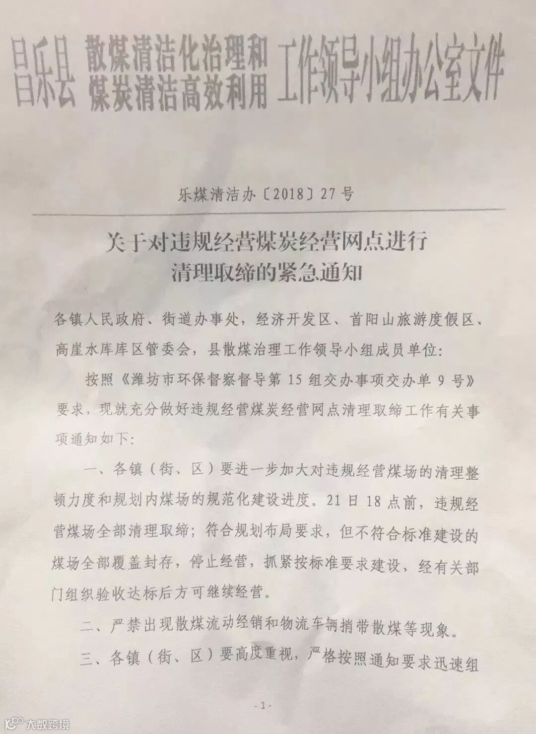 山东昌乐县发布《关于对违规经营煤炭经营网点进行清理取缔的紧急通知》,按照《潍坊市环保环保督导第15组交办事项交办单9号》要求,各镇(街、区)要进一步加大对违规经营煤场的清理整顿力度和规划内煤场的规范化建设进度。