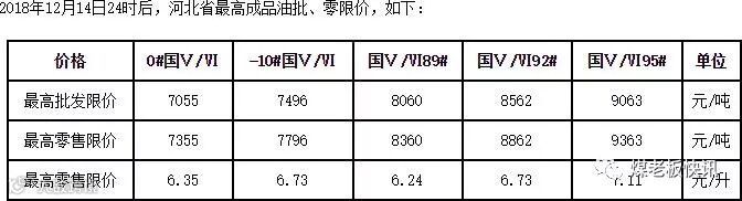 今日河北省汽柴油批零限价表: