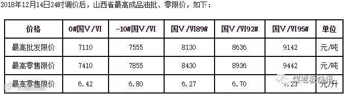 今日山西省汽柴油批零限价表: