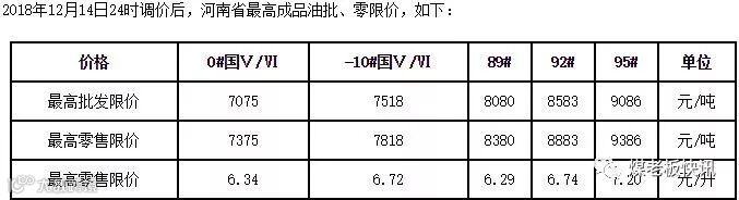 今日河南省汽柴油批零限价表: