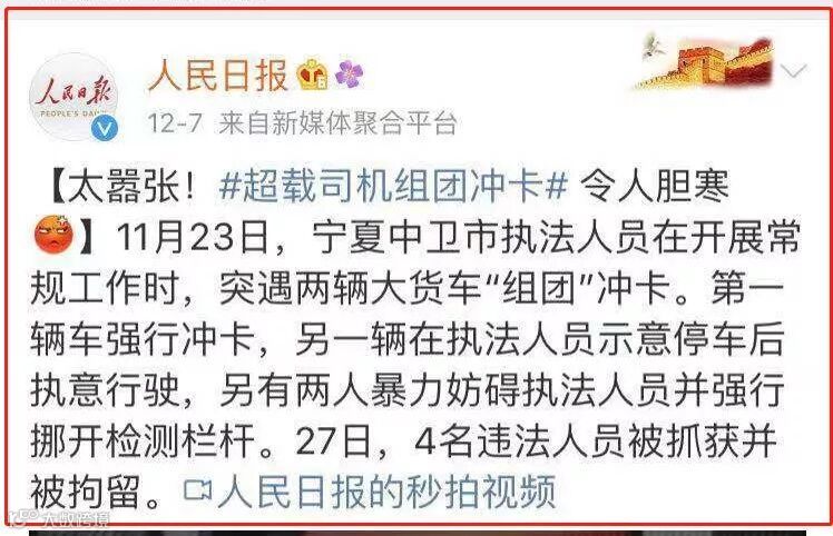 人民日报:超载司机组团冲卡