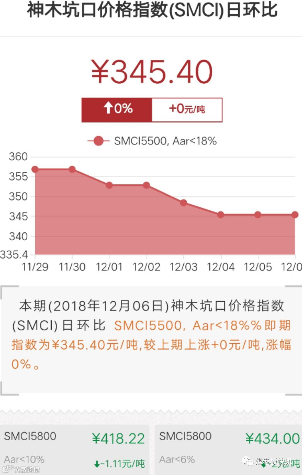 神木海湾煤矿12月6日上午9时,末煤下调10元/吨,售价为420元/吨;