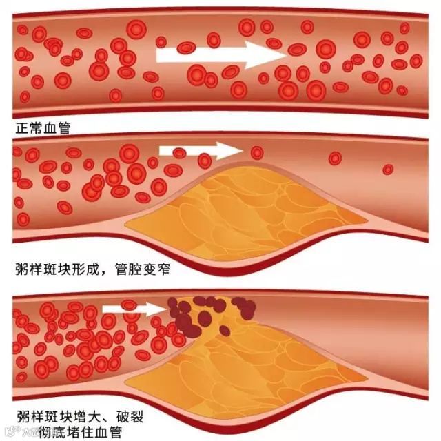 而胆固醇、甘油三酯等「水垢」过多,也会增加动脉粥样斑块形成的风险。若斑块脱落,随血液流动,堵在哪里,就会造成相应部分的栓塞。