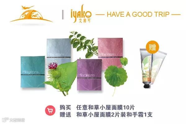 出生台湾的和草小屋也不例外,它同样有着它的故事,关于追寻天然美的故事。国庆旅行季特惠,购买任意和草小屋面膜10片,送和草小屋面膜2片装和手霜1支。