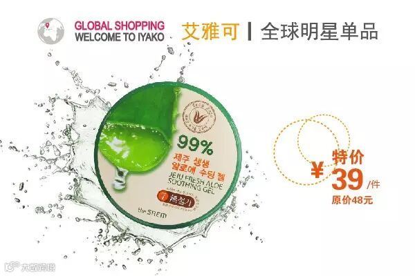 韩国得鲜99%芦荟胶300ml 原价:48元 特价:39元