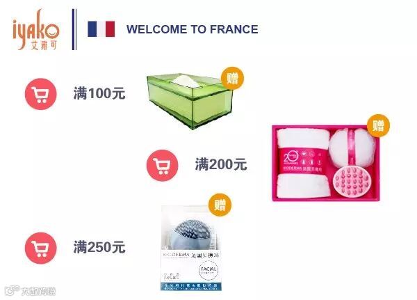 购买贝德玛产品满100元,送品牌纸巾盒;满200元,送品牌毛巾礼盒;满250元,送品牌洁面仪。
