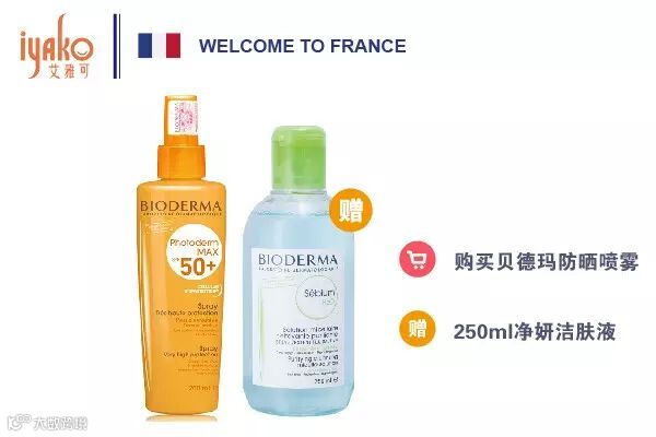 购买贝德玛防晒喷雾,送250ml净妍洁肤液。