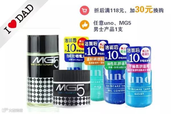 全场购买任意产品满118元,加30元换购任意uno、MG5男士产品1支
