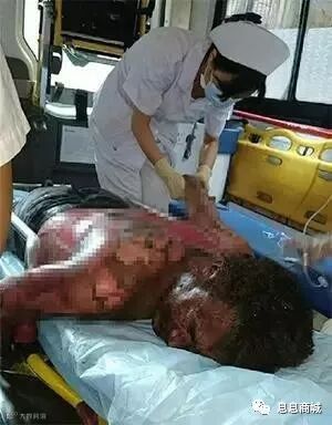 爸爸背部和两臂被烧得发红脱皮,
