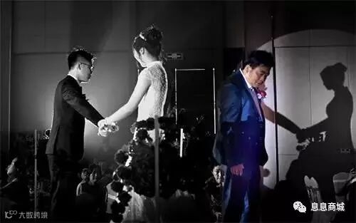 将新娘交到新郎手上时还开心地祝福,