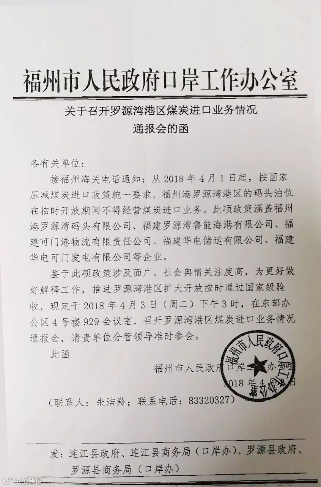 昨日据一份通知显示,从2018年4月1日起,按国家压减煤炭进口政策统一要求,福州港罗源湾港区的码头泊位在临时开放期间不得经营煤炭进口业务。依据是国家压减进口煤炭政策的统一要求。