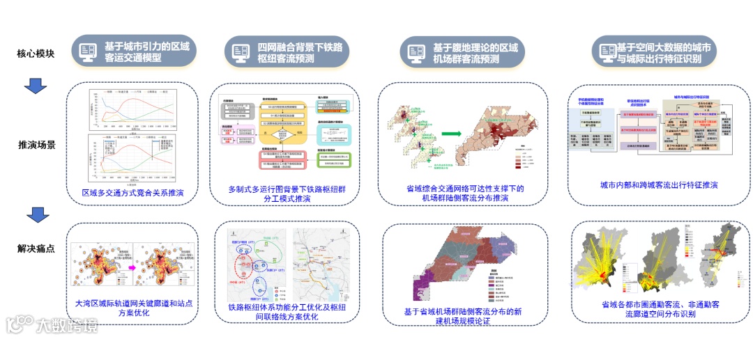 在省域(都市圈)层面,聚焦区域协同与重大设施布局,支持区域机场群客流竞合推演、铁路枢纽群分工优化、粤港澳大湾区轨道四网融合客流模拟等场景,助力识别客流廊道、优化枢纽规模与布局,提升区域交通网络整体效能。