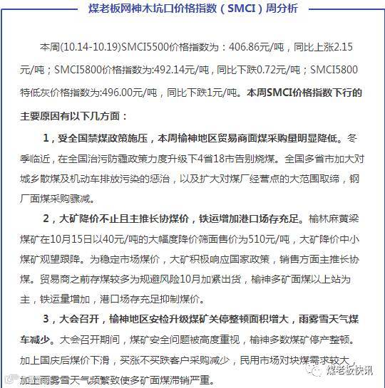 10月中旬,随着山西多地煤矿被迫责令停产后,榆神府煤矿也迎来检修停产、生产时间限制等严厉整顿。致使神木部分煤矿生意冷清面煤滞销,场地堆积如山,一直高涨的煤价10月后出现拐点下调。