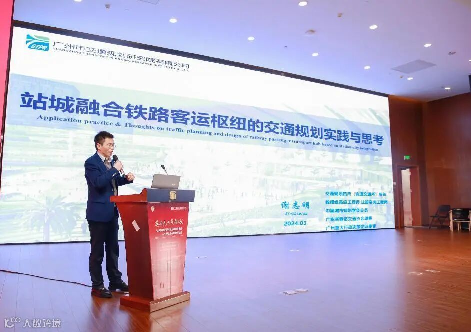 广交研交通规划四所所长谢志明以《站城融合铁路客运枢纽的交通规划实践与思考》为题作分享。他总结概括了铁路客运枢纽在站城界面、功能布局、流线组织、开发机制、管理模式等方面存在的问题,介绍了枢纽最新的发展趋势。以白云站为典型案例,详细介绍了白云站的总体布局、交通集疏运体系、流线组织等,并总结出科学确定交通设施规模、合理谋划设施空间布局、精细构建便捷集疏体系、精准模拟规划实施效果、精心打造智慧管理中枢等5大交通规划设计要点。同时,谢志明所长也从超大客流下如何进行客流组织、如何构建简洁直观且连续性好的指引标识系统、如何实现安检互认如等方面提出了思考。