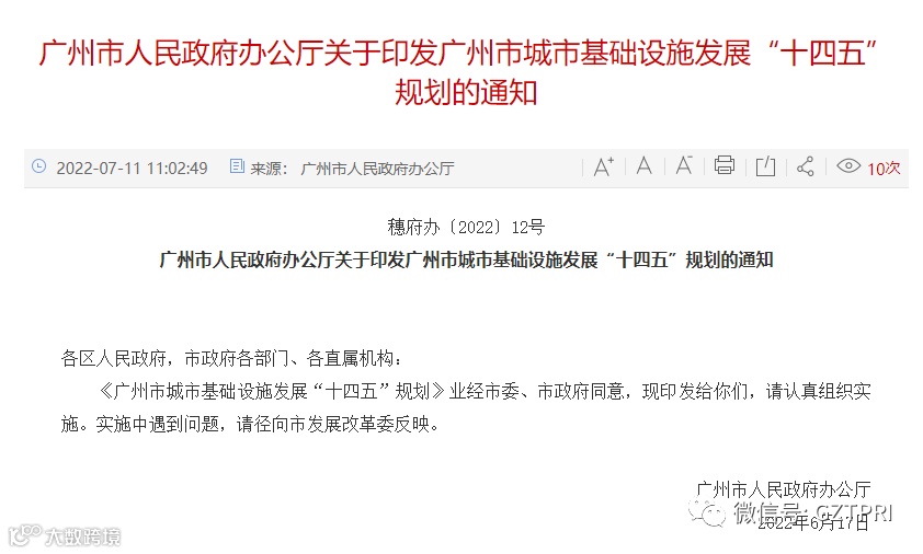 近日由广州市发展和改革委员会主编,我院参编的《广州市城市基础设施发展“十四五”规划》(以下简称《规划》)经广州市人民政府办公厅正式印发实施。
