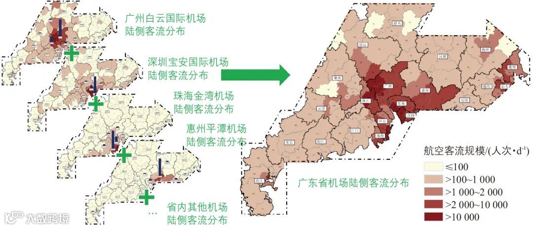图4 基于手机信令数据的广东省机场陆侧客流识别示例
