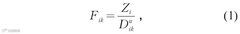 中心城市作为一定区域的核心,其影响力大小被称为场强。场强模型是确定腹地范围的主要方法之一,计算公式为
