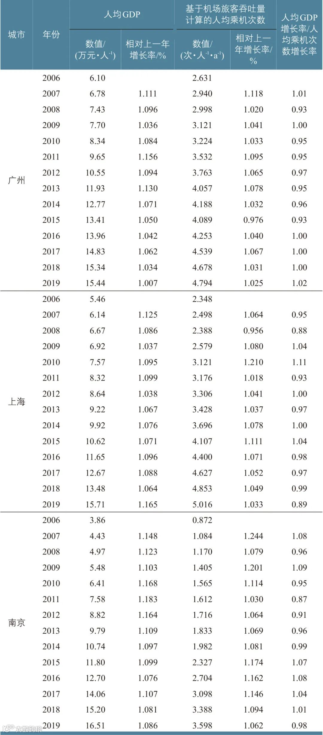 值得说明的是,历史关联分析所统计的并非严格意义的人均乘机次数。以广州市为例,广州白云国际机场旅客吞吐量实际上包含了广州市、佛山市、东莞市等城市的部分航空客流,以广州白云国际机场旅客吞吐量除以广州市人口所得广州市人均乘机次数会偏高。