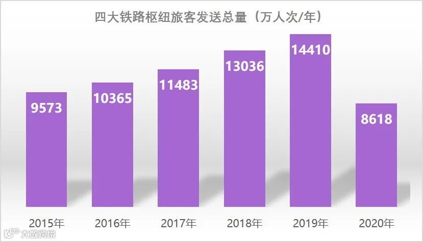“十三五”期间铁路枢纽旅客发送量
