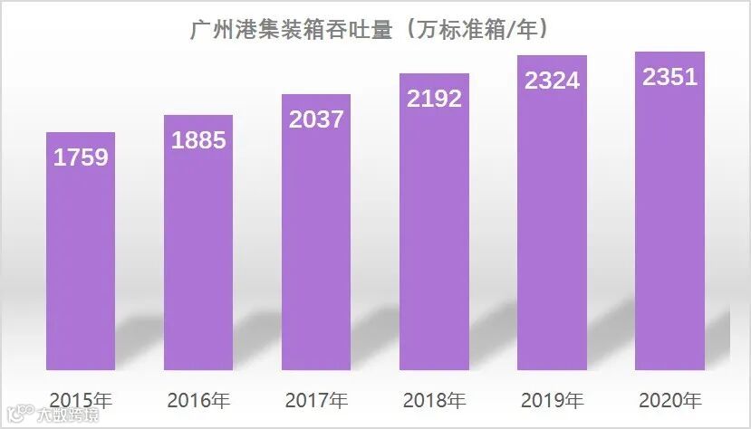 海港货运吞吐能力稳步增长。完成南沙港三期工程、南沙邮轮母港、广州港深水航道拓宽工程等重点项目,新建投产泊位27个,现有万吨级以上110个,集装箱码头75个。2020年,广州港货物吞吐量6.36亿吨/年,增幅22.1%,全球排名从第6位提升至第4位,集装箱吞吐量2351万TEU/年,增幅33.4%,全球排名从第7位提升至第5位。广州国际航运中心发展指数排名从全球第28位快速跃升至第13位。