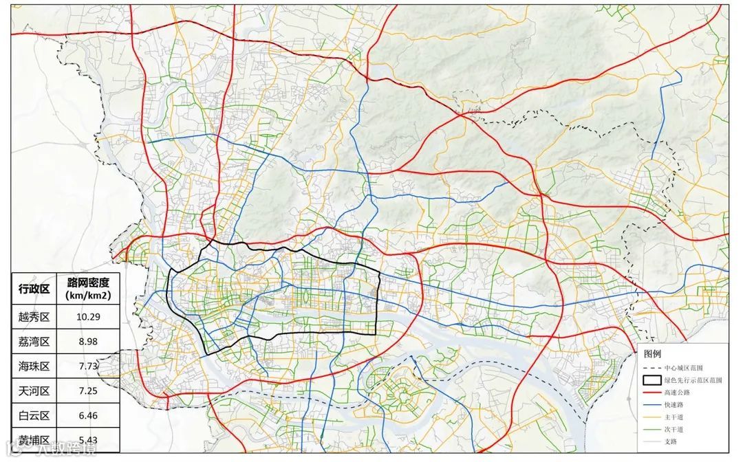 广州市中心城区路网密度图