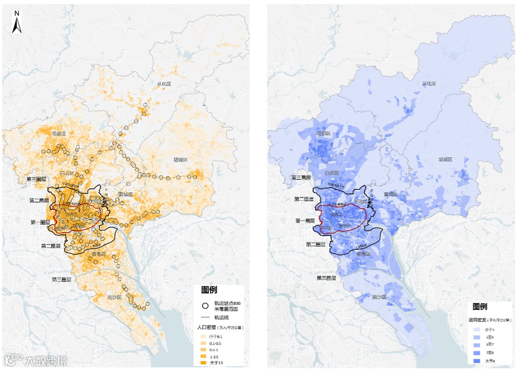 广州市轨道、道路交通设施与人口分布