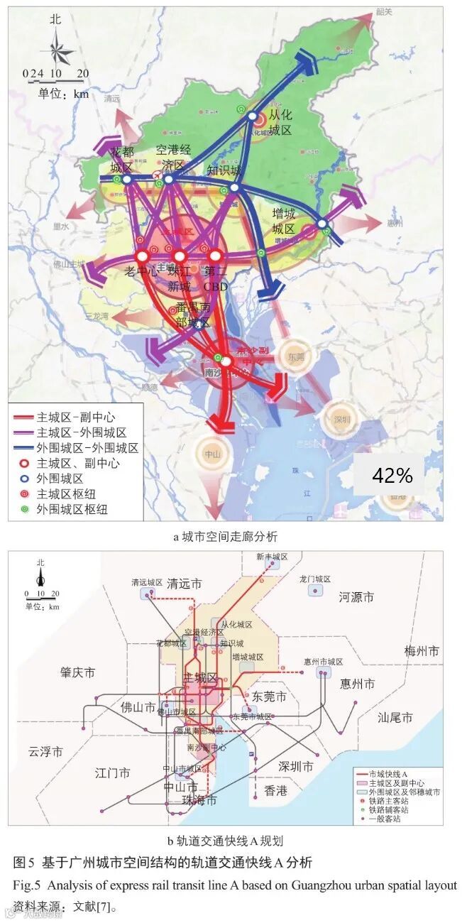 以轨道交通快线为切入点,重构由国家铁路(含高铁)、城际铁路、城市轨道交通(含轨道交通快线)组成的高快速轨道交通网络,打造深度融合的广佛一张网、穗莞多通道、与其他城市中心直达的轨道交通衔接体系。