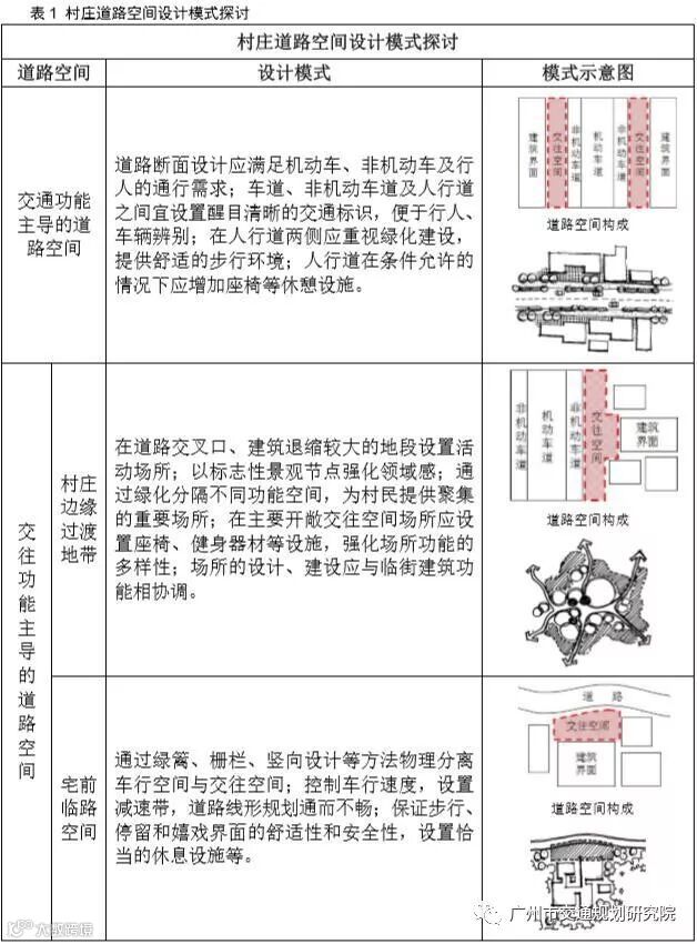 综上所述,村庄道路空间的规划设计可分为以交通功能为主导的道路空间、服务于村庄生活交往的道路空间以及功能共享化道路空间三个方面。设计中,应当从实际情况出发,分类探讨设计模式,营造安全宜居的村庄道路空间。(表1)