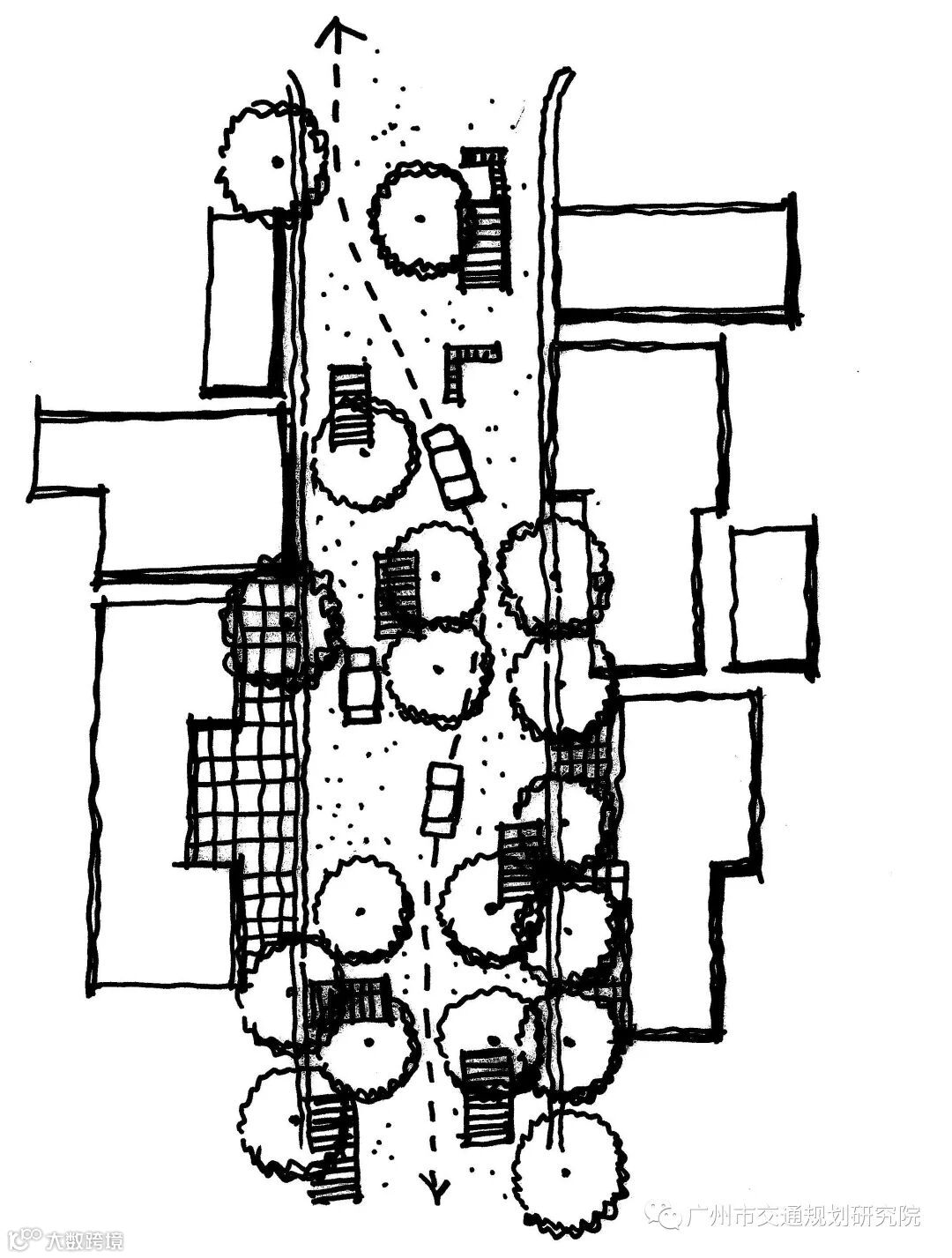 “共享街道”的理念已被包括凯文·林奇、简·雅各布斯、唐纳德·艾普利亚德等在内的多位学者在著作中提出,其基本内容是构造一个统一体,使行人、儿童、老人、自行车、停靠的车辆和行驶的车辆一同分享同一个街道空间。而这一理念引入如今村庄地区道路空间规划设计中也有着相当的意义[3]。