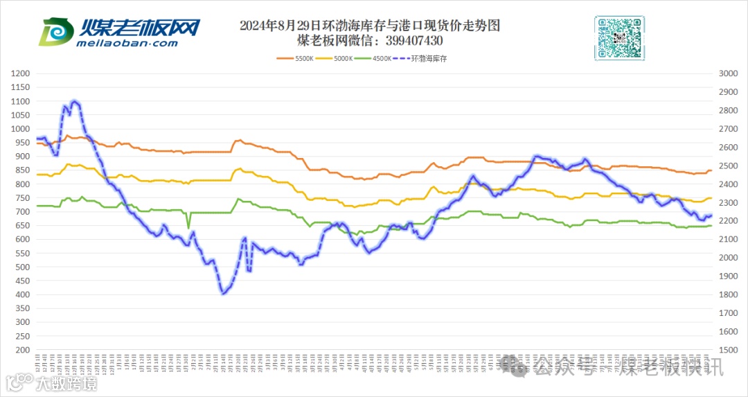 截止8月30日上午,据追踪的主流煤矿(含榆神、府谷、横山、内蒙)来看,价格变动煤矿不足10家,价格涨跌波动范围10~12元/吨,仅内蒙个别矿籽煤、混块单次降幅30~40元/吨,行情延续僵持状态,坑口煤矿调价信息少。神木区域:2矿原煤上涨10~12元/吨,1矿面煤、块煤下调10元/吨;府谷区域:个别矿面煤、籽煤小涨10元/吨,横山区域:价格变动小,榆阳区域:个别大矿竞拍价格较上上期小幅上涨。内蒙:部分矿原煤、块煤上涨10元/吨,部分矿混块、籽煤单降30~40元/吨,市场表现平稳,成交清冷。