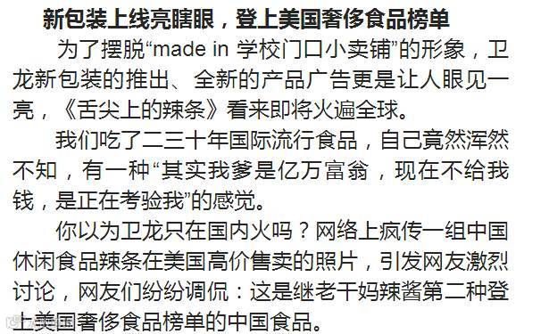 @邹大可:纵有千种风情美食,唯独钟意卫龙辣条。