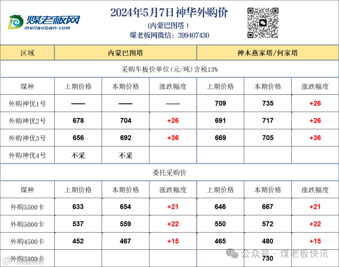 HW煤矿:2024年5月7日早上8点起现金售价:所有煤种↑10
