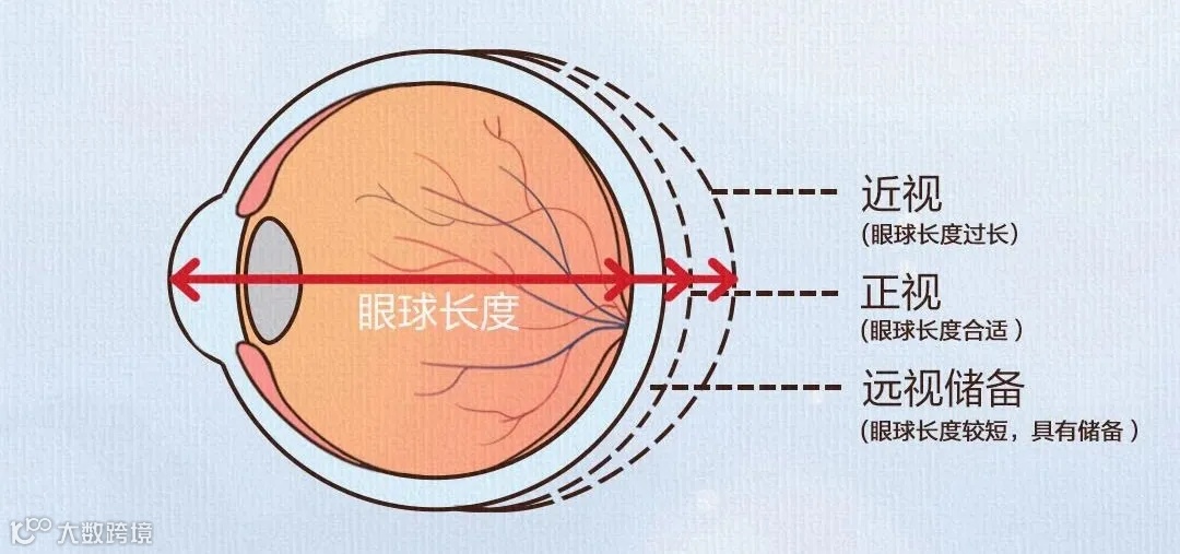 在我们刚出生的时候,眼轴通常较短,因此处于生理性远视阶段,并具备一定的远视度数储备。随着年龄的增长、身体的发育,眼球逐渐长大,眼轴会和身高一样逐渐增长,远视度数逐渐降低而趋于正视,这个过程称为“眼球的正视化”。